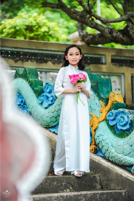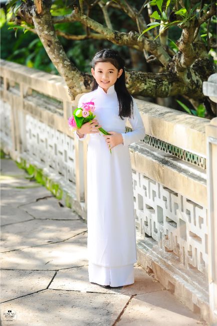 Lấy bối cảnh là Thảo cầm viên- TP.Hồ Chí Minh, dưới bàn tay tài hoa của Nhiếp ảnh gia Vũ Thanh Tùng cùng với sự trợ diễn của các người mẫu danh tiếng Việt: Mỹ Duyên – Nữ hoàng Trang sức Việt Nam, Lâm Thu Hồng – Top 5 Hoa hậu Biển Việt Nam Toàn cầu, Huyền Trân – Hoa hậu Thời trang Châu Âu, top 20 thí sinh Đại sứ áo dài nhí đã có buổi chụp hình ngoại cảnh với trang phục áo dài trắng.