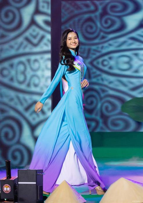 Đọ sắc vóc dịu dàng trong phần thi cuối cùng, cùng biểu diễn với vũ đoàn Rainbow, 30 cô gái trong trang phục Áo dài xanh chuyển động thướt tha trên nền nhạc bài hát “Những đứa con của thiên nhiên (một sáng tác của PP Nguyễn).