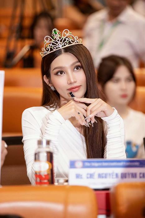 Tintuc - Á hậu 1 Miss Grand Vietnam 2022 Chế Nguyễn Quỳnh Châu khoe trọn đường cong gợi cảm khi ngồi làm giám khảo cho đêm chung kết một cuộc thi nhan sắc tại trường Đại học.