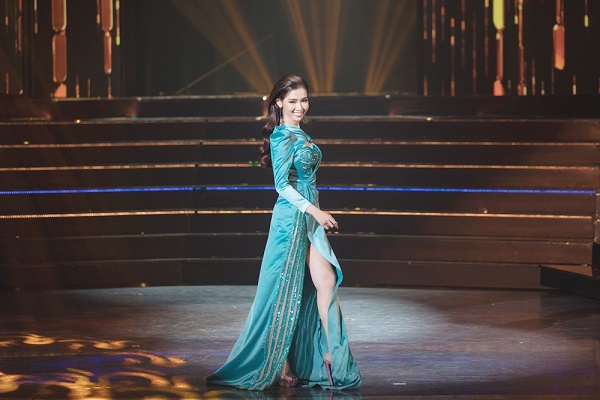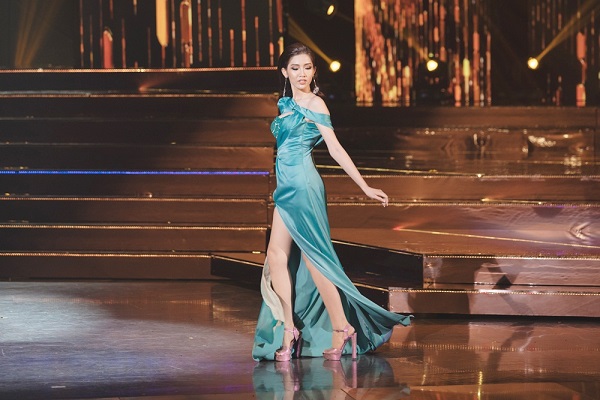 Đỗ Nhật Hà không làm người hâm mộ thất vọng khi thể hiện tốt qua các phần thi. Đại diện Việt Nam là thí sinh dự thi cuối cùng, phần nào giúp cô tự tin hơn. Đừng bước chân, cách pose dáng hay đánh hông đều nhuần nhuyễn, nụ cười rạng rỡ giúp người đẹp cuốn hút hơn trong nhiều khoảnh khắc. Bên cạnh đó, việc lựa chọn thiết kế đầm dạ hội màu xanh pastel chất liệu lụa bóng với phần đính kết ở thân trên, giúp Đỗ Nhật Hà tỏa sáng như một nữ thần trên sân khấu. Làn da trắng bật tông là ưu điểm mạnh của người đẹp nên người hâm mộ cho rằng sự lựa chọn thiết kế với phom dáng, màu sắc này là thông minh.