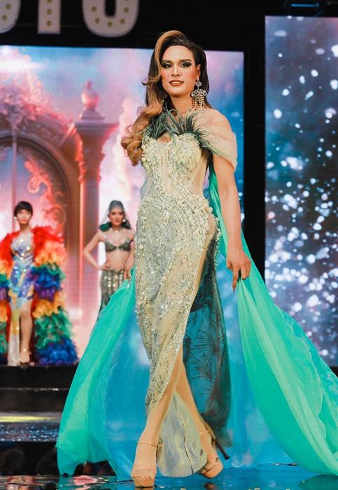 Top 37 quay trở lại với trang phục dạ hội lộng lẫy sau quãng thời gian giải lao. Khác với sự sôi động khi trình diễn áo tắm, ở phần thi này các thí sinh phô diễn thần thái sang trọng, cuốn hút cùng những bước catwalk uyển chuyển.