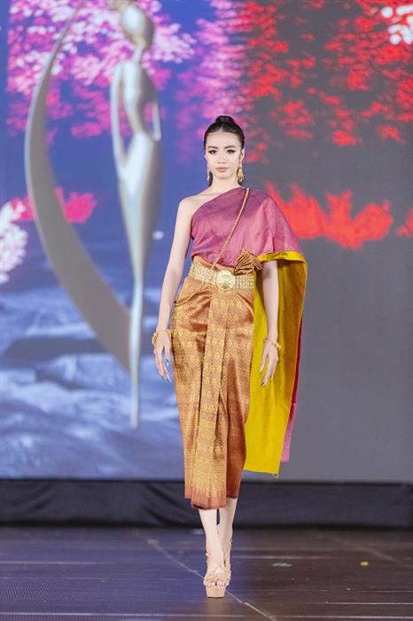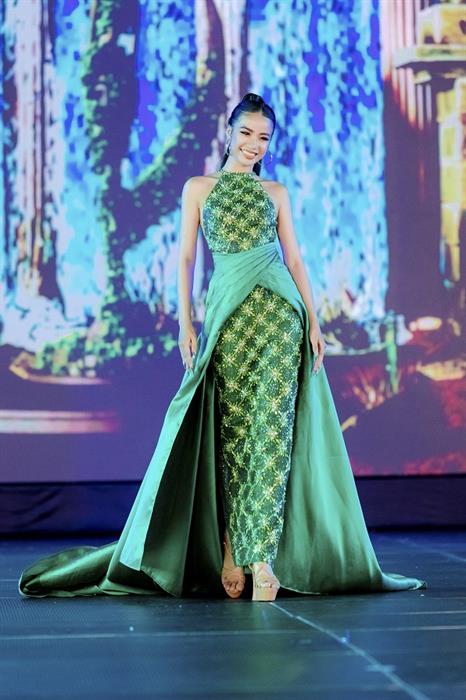 Trang phục dạ hội – Evening Gown của cô nàng là một bộ cánh từ NTK Brian Võ. Thiết kế này vừa giúp Xuân Nghi hoá thành quý cô thực thụ, toả ra sự quyến rũ, sang trọng, cũng vừa khéo léo giúp cô khoe được những đường cong cùng tỷ lệ cơ thể hoàn hảo. Phần trình diễn trang phục Khmer cũng gây chấn động không kém khi Xuân Nghi dù lần đầu diễn trang phục truyền thống Khmer nhưng vẫn xuất thần, trở thành cô gái Campuchia đầy ma mị.
