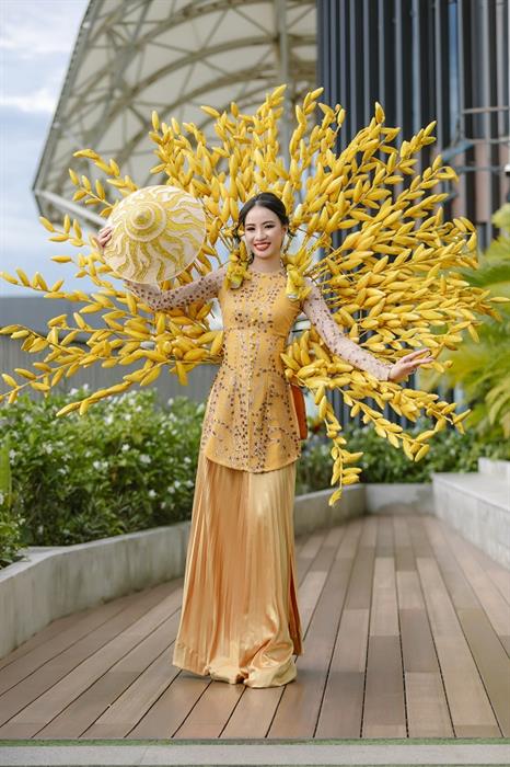 Nữ sinh Đại học Quốc tế Hồng Bàng đã chuẩn bị kỹ lưỡng, đầu tư nghiêm túc về trang phục và cả kỹ năng catwalk cho tất cả những lần xuất hiện. Tại phần thi National Costume (Trang phục Văn hoá Dân tộc), Xuân Nghi đã diện một thiết kế từ NTK Nguyễn Lê Vĩnh Tường: Mùa Vàng, được lấy cảm hứng từ những bông lúa chín của các bác nông dân.