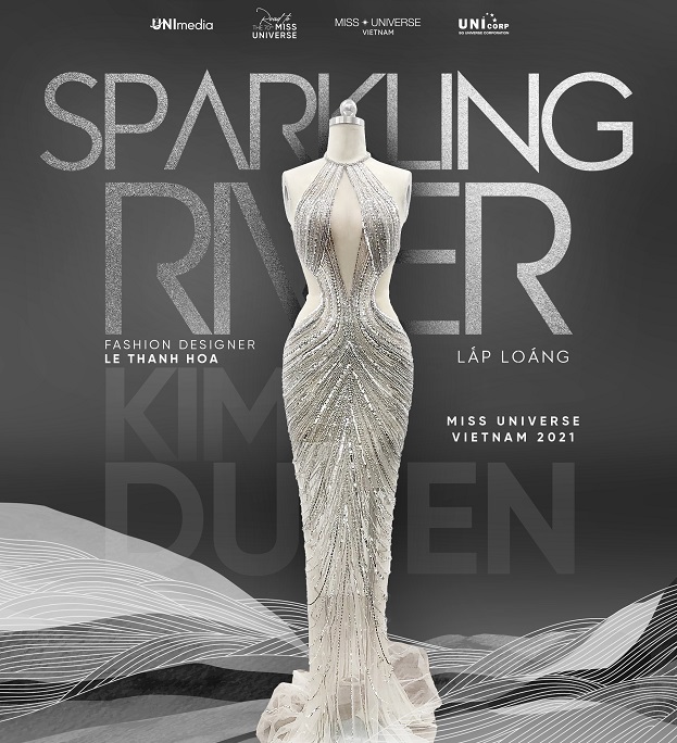 Được lấy ý tưởng từ hình ảnh sóng nước phản chiếu ánh nắng mặt trời sáng sớm rực rỡ và ánh hoàng hôn tuyệt đẹp trên dòng sông Mê Kông – dòng sông chảy dài trên quê hương Cần Thơ của Kim Duyên. Những hình ảnh của con sông quê dồi dào, trù phú những trĩu nặng phù sa, phản chiếu vẻ đẹp chứa chan của quê hương sông nước đặc trưng miền Tây Nam Bộ, quê hương của Kim Duyên – chiến binh của Việt Nam tại Miss Universe 2021. Thiết kế Sparkling River có sự khác biệt giữa ý tưởng bản vẽ và khi ra thành phẩm, vì vậy thiết kế này đã được chỉnh sửa lại toàn bộ phần trên để phù hợp với vóc dáng và tinh thần Kim Duyên mang đến tại Miss Universe. Đó là lý do mà thiết kế này được hoàn thành vài tiếng trước khi Kim Duyên chính thức lên đường.
