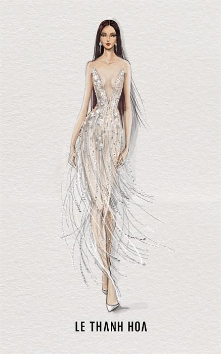 Nối tiếp hành trình của Kim Duyên tại Miss Universe, dưới bàn tay “phù thủy” của NTK Lê Thanh Hòa, tiếp tục có thêm 2 thiết kế trang phục dạ hội vô cùng đặc sắc, dự kiến sẽ được Kim Duyên lựa chọn để trình diễn trong những đêm thi đặc biệt quan trọng của Miss Universe mang tên: Silver Lining và Sparkling River.