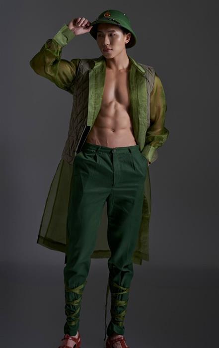 Đem đến cuộc thi năm nay, ngoài một ý chí mạnh mẽ và tinh thần chiến đấu quật cường, Nguyễn Hoàng Tùng còn được NTK Vũ Việt Hà dày công chuẩn bị bộ trang phục dân tộc đặc biệt được làm từ vải đũi và tơ tằm trong suốt, được lồng ghép tinh tế trong đó là hình ảnh chiếc áo dài truyền thống Việt Nam cùng với trang phục của các chiến binh bảo vệ và xây dựng hòa bình cho tổ quốc.