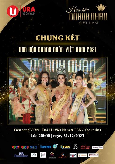 Sau đêm chung kết diễn ra vào ngày 24/12/2021, cuộc thi Hoa hậu Doanh nhân Việt Nam 2021 sẽ mang đến những khoảnh khắc trọn vẹn nhất khi được phát sóng trên sóng VTV9 Đài Truyền hình Việt Nam và kênh youtube của FBNC, kênh youtube báo Thanh Niên. Với sự đầu tư công phu từ sân khấu, ý tưởng dàn dựng và những trình diễn dự thi của các thí sinh, chương trình sẽ là một buổi đại tiệc hoành tráng nhân dịp cuối năm dành cho khán giả truyền hình