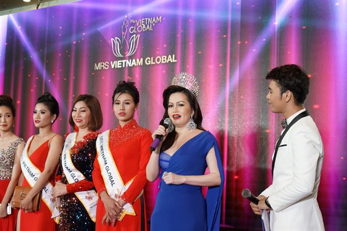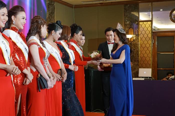 Hoa hậu MRS VIETNAM GLOBAL 2018 Đỗ Thị Như Mai tặng hoa cho các thí sinh