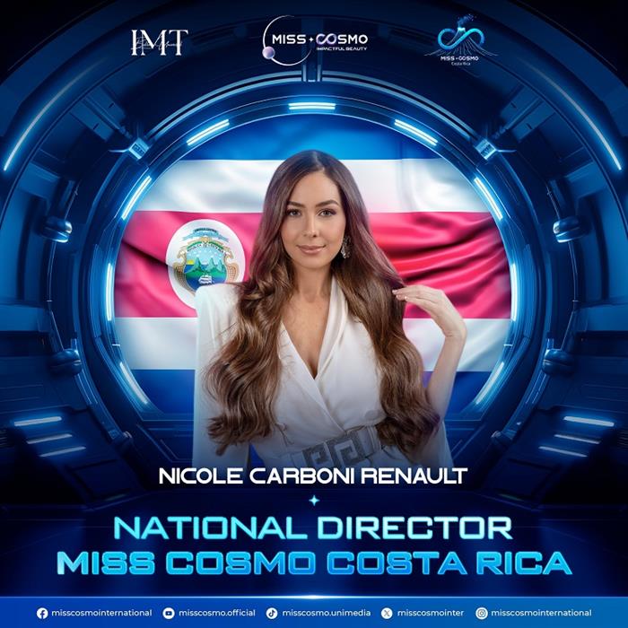 Năm 2025 đánh dấu lần đầu tiên Costa Rica cử đại diện đến Miss Cosmo với sự đồng hành của Giám đốc Quốc gia Nicole Carboni Renault. Đơn vị sở hữu bản quyền của Miss Cosmo tại Costa Rica là Belleza Universal IMT. Là một người mẫu thời trang, MC truyền hình, hoa hậu và vận động viên mang hai quốc tịch Costa Rica – Mỹ, Nicole Carboni Renault đã có hơn 20 năm kinh nghiệm trong lĩnh vực nhan sắc và người mẫu. Với tầm nhìn mang tính chiến lược, cô mong muốn đưa Belleza Universal IMT trở thành tổ chức sắc đẹp hàng đầu tại Costa Rica, giúp phụ nữ phát huy bản lĩnh và sự tự tin của mình.