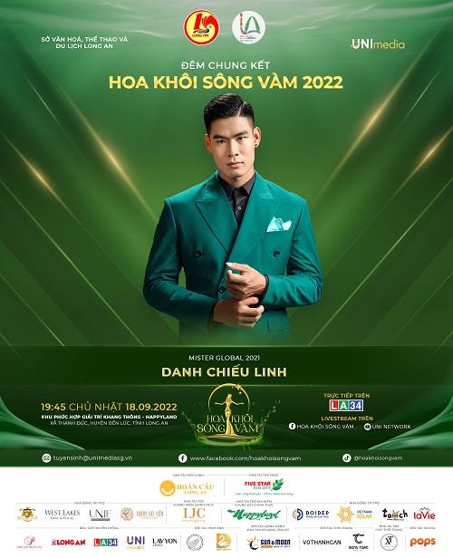 Mister Global 2021 Danh Chiếu Linh đồng hành cùng Hoa Khôi Sông Vàm 2022 tại đêm Chung kết với vai trò giám khảo khách mời. Trước khi trở thành đại diện của Việt Nam tham gia Mister Global 2021 và xuất sắc đạt vị trí Á Vương 1. Vừa qua, Nam Vương người Tây Ban Nha của cuộc thi chính thức bị tước danh hiệu, Danh Chiếu Linh chính thức trở thành Nam Vương kế nhiệm của cuộc thi. Anh là đại diện thứ 2 của Việt Nam đạt được danh hiệu này.