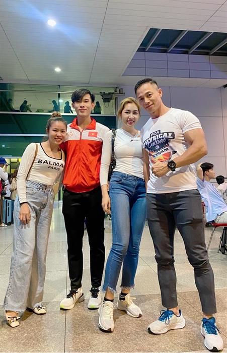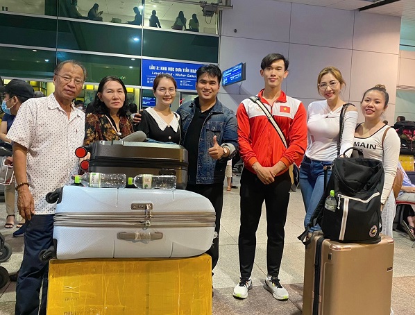Trước giờ bay, Hoa hậu Đại dương Đặng Thu Thảo cùng các nghệ sỹ và đông đảo người hâm mộ, người thân, bạn bè của VĐV Nguyễn Ngọc Hải đã có mặt tại sân bay Tân Sơn Nhất- TP.HCM để tiễn một trong những VĐV xuất sắc nhất lên đường đi chinh chiến Quốc tế.