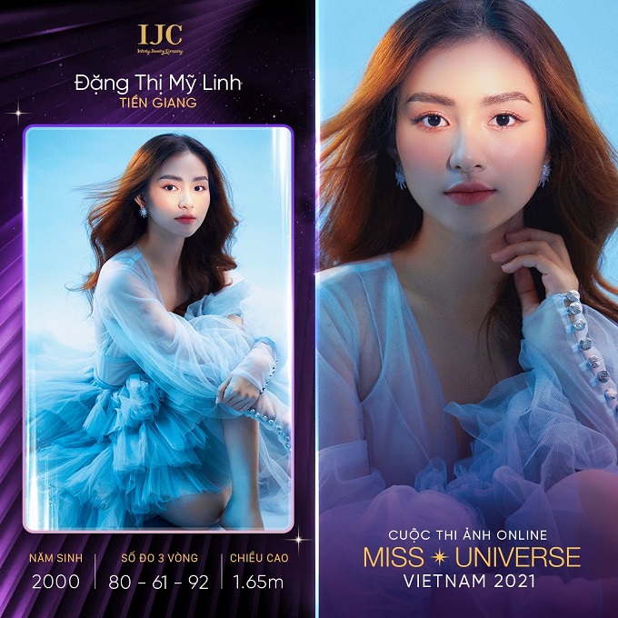 Đặng Thị Mỹ Linh (sinh năm 2000) đến từ Tiền Giang, hiện đang theo học ngành Tài chính – Ngân hàng tại Đại học Văn Lang. Gạt bỏ sự rụt rè và tự ti về bản thân, Mỹ Linh quyết định đăng ký tham gia cuộc thi ảnh online Hoa hậu Hoàn vũ Việt Nam 2021 để khám phá những điều mới mẻ trong cuộc sống, đồng thời khẳng định thông điệp “Bạn luôn xinh đẹp theo cách riêng của mình”. Mỹ Linh được gia đình và bạn bè động viên, ủng hộ tham gia cuộc thi, đó là nguồn động lực để cô tự tin hơn. Mỹ Linh cao 1m65, số đo hình thể 80-61-92.