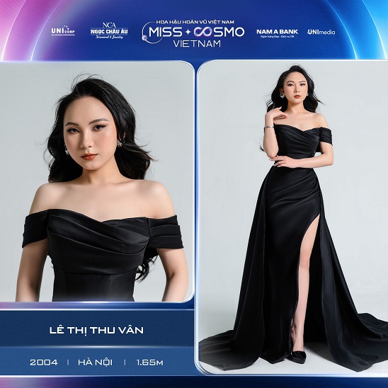 Sinh năm 2004, thí sinh Lê Thị Thu Vân là một trong số những “em út” của cuộc thi. Cô gái đến từ Hà Nội sở hữu bảng thành tích hoạt động như: Thành viên Ban điều hành của LIVE – DongAnh Youth Cooperation (Câu lạc bộ sinh viên Đông Anh trực thuộc Uỷ ban Hội LHTN Việt Nam, huyện Đông Anh); Thành viên của Mạng lưới Thanh niên Hành động vì Khí hậu Việt Nam – YNet Vietnam; BTC Hội nghị Thanh niên Việt Nam về Biến đổi khí hậu (LCOY Việt Nam 2023). “Đến với Cuộc thi Online Hoa hậu Hoàn vũ Việt Nam – Miss Cosmo Vietnam 2023, đối với tôi đây là một bước ngoặt lớn, vượt khỏi vùng an toàn của chính mình. Nhưng điều này càng làm tôi háo hức hơn, bởi phía cuối hành trình, tôi sẽ trở thành một “tôi” mới; chính những trải nghiệm dũng cảm sẽ tôi luyện nên tôi” – Thu Vân quyết tâm.