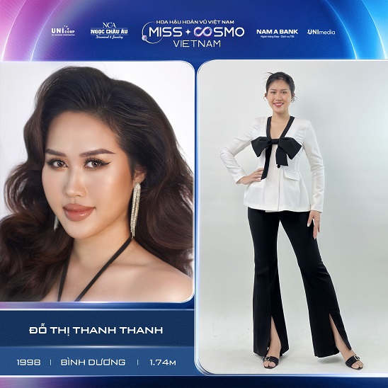 Đỗ Thị Thanh Thanh đến từ Bình Dương là thí sinh gây chú ý với chiều cao 1m74. Cô gái 25 tuổi từng đảm nhận nhiều vai trò quan trọng như Thành viên Ban chấp hành Hội sinh viên trường Đại học Ngân hàng TP.HCM năm 2016 – 2020; Trưởng Ban Truyền Thông Cuộc thi Hùng biện “Say To Succeed” trường Đại học Ngân hàng TP.HCM năm 2018; Ban tổ chức chương trình Xuân Tình Nguyện, Mùa Hè Xanh của trường Đại học Ngân hàng TP.HCM năm 2018 – 2020; Trưởng Ban tổ chức Cuộc thi Người dẫn chương trình “The MC Race” trường Đại học Ngân hàng TP.HCM năm 2019; Cựu Chủ nhiệm CLB Phát Thanh trường Đại học Ngân hàng TP.HCM năm 2019 – 2020. Hoạt động sôi nổi và tích cực ở môi trường đại học đã giúp Thanh Thanh có thêm sự tự tin trên hành trình chinh phục ước mơ hoàn vũ.