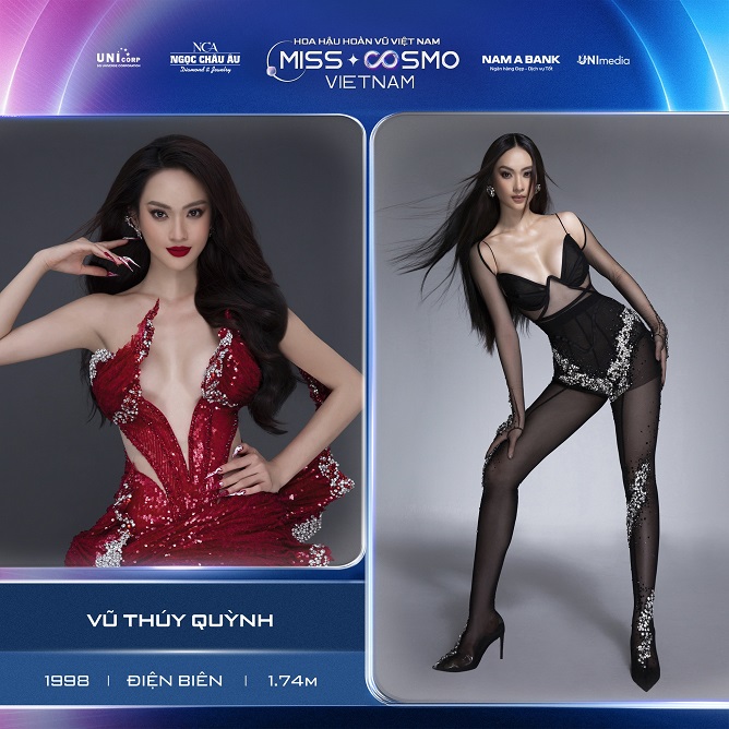 Cũng là một gương mặt quen thuộc của người hâm mộ các cuộc thi sắc đẹp, Vũ Thúy Quỳnh – Top 10 Hoa hậu Hoàn Vũ Việt Nam 2022 đã chính thức điền tên vào đường đua. Đến từ Điện Biên, cô nàng là Cử nhân Học viện Hành chính Quốc gia Việt Nam, cùng với đó là loạt thành tích: Top 12 Siêu mẫu Việt Nam 2018; Giải “Siêu mẫu Phong cách” Siêu mẫu Việt Nam 2018; Giải “Người đẹp Ảnh” Hoa hậu Hoàn vũ Việt Nam 2022; Thành viên Team Hương Giang tại The New Mentor 2023. “Khi tôi nhìn thấy chủ đề năm nay, nó đã thật sự chạm đến trái tim tôi, giống với những gì tôi đã và đang làm để có một Vũ Thuý Quỳnh như ngày hôm nay; mạnh mẽ, bản lĩnh, tự tin, tràn đầy năng lượng. Cùng với dự án “vì trẻ em vùng cao”, tôi mong muốn xây dựng những kế hoạch cụ thể, giúp đỡ các em nhiều hơn”. Vũ Thúy Quỳnh sở hữu chiều cao 1m74.