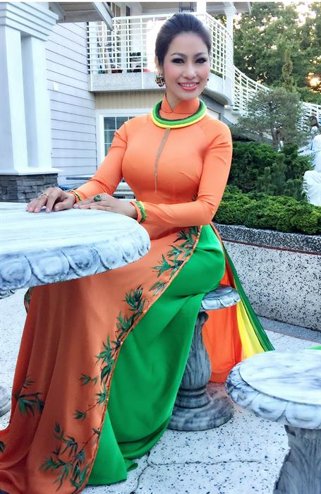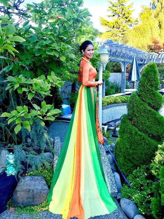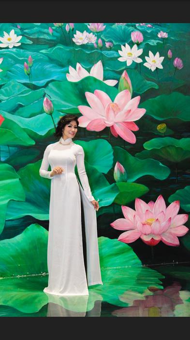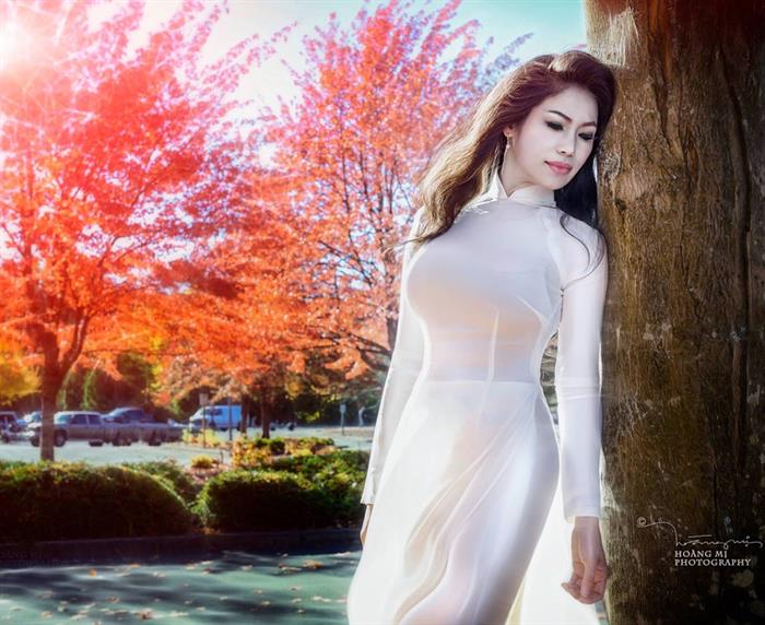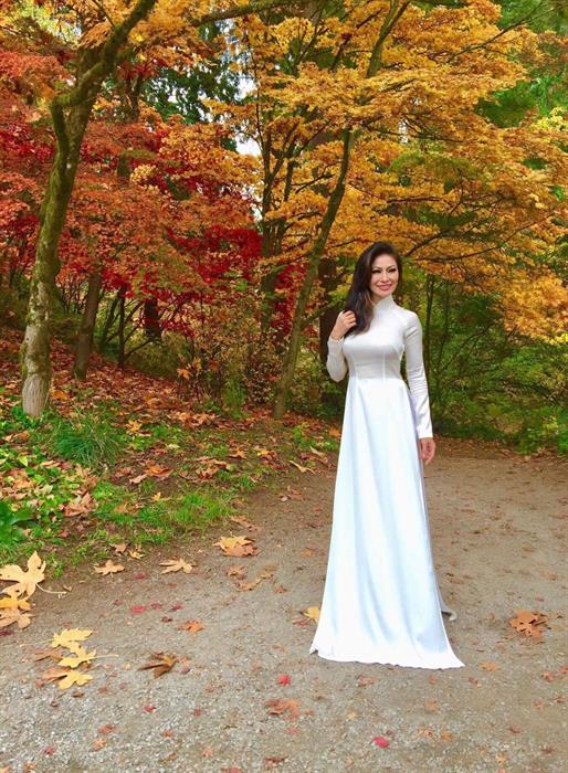 Trong trang phục áo dài truyền thống, Hoa hậu Thu Hạnh toát lên nét duyên dáng, dịu dàng của người con gái Việt Nam. Với sắc trắng trang nhã đã góp phần tôn lên đường cong mĩ miều cùng nhan sắc tươi trẻ của cô.