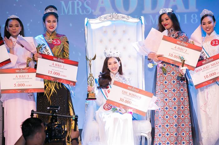 Ngoài ngôi hoa hậu của Phí Thị Thuỳ Linh, BTC Mrs Áo dài 2018 cũng lần lượt trao giải Á hậu 1 cho diễn viên Huỳnh Thảo Trang (vợ cũ cựu tiền đạo Phan Thanh Bình), Á hậu 2 cho Nhật Giang. Danh hiệu Á hậu 3 thuộc về hai thí sinh Thu Phương và Nguyễn Hồng. Song song đó, người đẹp Mai Quỳnh được xướng tên với giải thưởng Hoa hậu Nhân ái.