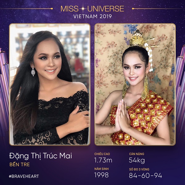 Đặng Thị Trúc Mai, sinh năm 1998, cao 1m73 đến từ Bến Tre, nổi bật trong dàn thí sinh bởi câu chuyện truyền cảm hứng. Mang 2 dòng máu với ba là người Kinh, còn mẹ là người dân tộc Khmer, ngay từ nhỏ Trúc Mai đã quyết tâm kiên trì cho việc học nhằm thay đổi cuộc sống của gia đình. Khi bắt đầu vào học cấp 1, cô bị bạn bè chọc ghẹo là “Miên lai” nhưng điều đó không khiến cô mặc cảm mà trở thành động lực để cô cố gắng hơn trong việc học. Hiện Trúc Mai là sinh viên trường Đại học Tài chính – Marketing.