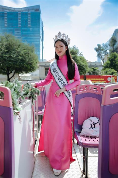 Trước đó, vào buổi sáng cùng ngày, đương kim “Miss Eco Teen International” đã cùng người hâm mộ gặp gỡ giao lưu. Trở về trong vòng tay của những người yêu thương đã hết lòng ủng hộ mình trong suốt chặng đường vừa qua, Bella Vũ xuất hiện trong Áo dài giản dị, cùng fan ngồi xe buýt hai tầng đi dạo khắp đường phố Sài Gòn.