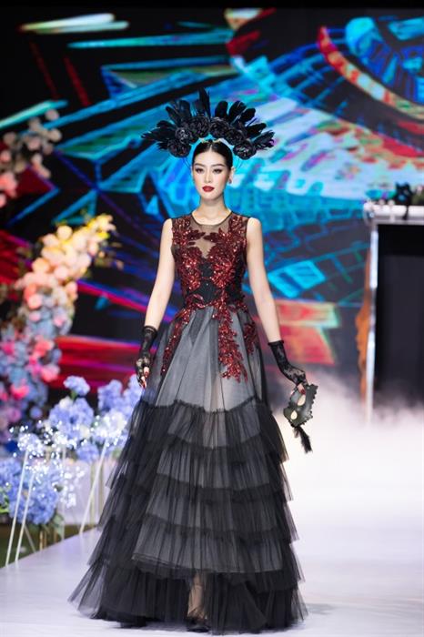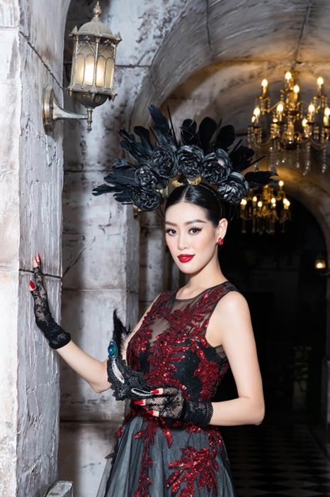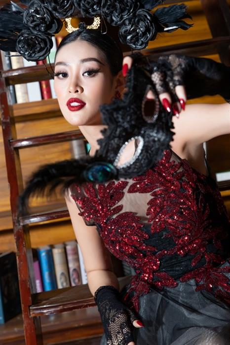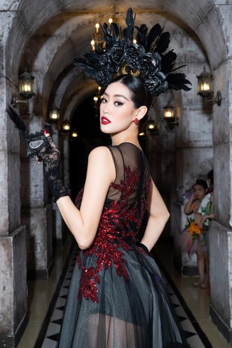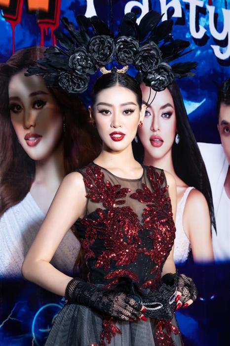 Hoà vào không khí đón Halloween, Hoa hậu Khánh Vân chọn tham gia một show diễn thời trang dành cho mẫu nhí có chủ đề về ngày Halloween. Trong bộ cánh màu đen kết hợp cùng chiếc nón phụ kiện to hoạ tiết cách điệu, Hoa hậu Khánh Vân khoe thần thái ngời ngời, tạo dáng đầy mê hoặc trong không gian được trang trí phù hợp với bối cảnh Halloween của show diễn. Cô sử dụng son môi đỏ, tạo điểm nhấn hài hoà cùng màu sắc trên trang phục. Đây cũng là một trong những dịp hiếm hoi người đẹp chọn màu son đỏ. Hoá thân thành nàng công chúa Halloween, Hoa hậu Khánh Vân tự tin chinh phục khán giả bằng phong thái trình diễn chuyên nghiệp của mình.