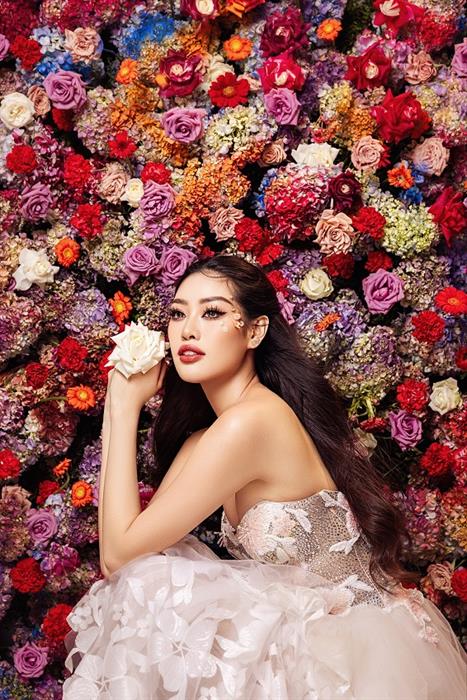 Nếu như năm ngoái, Hoa hậu Khánh Vân hoá thân thành nàng Tinker Bell mừng tuổi 27 thì năm nay, cô trở thành nữ hoàng hoa xinh đẹp và lộng lẫy, trong tiết trời xuân rực rỡ sắc màu. Với background là những bông hoa kết lại, Hoa hậu Khánh Vân xuất hiện nổi bật cùng đầm cúp ngực. “Nữ hoàng hoa” còn là câu chuyện tiếp nối của “Sống như những đoá hoa” – bài hát mà Hoa hậu Khánh Vân chọn lồng vào phần final walk của mình trong đêm kết thúc đương nhiệm Hoa hậu Hoàn vũ Việt Nam. “Sống như những đoá hoa, luôn rạng rỡ và lan toả hương sắc, truyền cảm hứng đến với mọi người. Phụ nữ là những đoá hoa xinh đẹp và bạn chính là nữ hoàng trong khu vườn hoa ý nghĩa của cuộc đời” – thông điệp mà Hoa hậu Khánh Vân muốn gửi gắm cho bộ ảnh lần này.