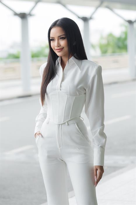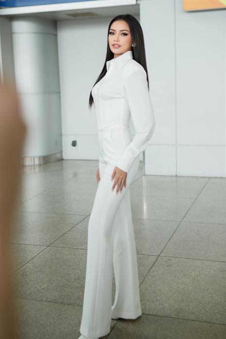Hoa hậu Ngọc Châu diện nguyên cây trắng nổi bật khi đến sân bay. Cô rạng rỡ và tỏa sáng trong bộ cánh màu trắng nhã nhặn, có phần áo sơ mi vai ngang và điểm nhấn là phần corset ngay eo. Phong cách sân bay của Ngọc Châu vừa thanh lịch, sang trọng nhưng không kém phần cuốn hút gợi cảm. Lối trang điểm tự nhiên và mái tóc thắng mượt của Ngọc Châu là điểm cộng hoàn hảo cho set đồ này. Nàng hậu còn tinh tế khi chọn giày cao gót và set vali Mia màu trắng thời thượng để đồng bộ hoàn hảo với trang phục. Cộng với thần thái tự tin, cuốn hút, cô nhanh chóng thu hút sự chú ý của mọi người.