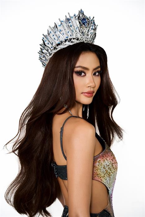 Trong loạt ảnh này, Đương kim Hoa hậu Hoàn vũ Việt Nam – đại diện Việt Nam tại Miss Cosmo 2024 tỏa sáng rạng rỡ trong thiết kế evening gown độc đáo, được lấy cảm hứng từ chính ngày sinh của cô.
