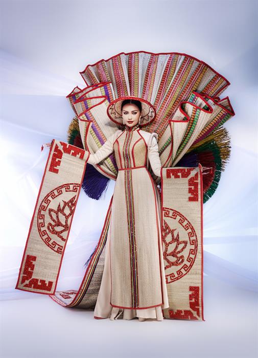 Trang phục dân tộc Chiếu Cà Mau là tác phẩm của nhà thiết kế Nguyễn Quốc Việt, được cố vấn bởi nhà thiết kế Nguyễn Minh Công và hỗ trợ bởi nhà thiết Trần Quốc Dũng và thạc sĩ, trưởng bộ môn Thiết kế thời trang trường Đại học Tôn Đức Thắng thầy Nguyễn Hồng Khiêm. Đặc biệt, nhãn hàng Kelly Pang đã chế tác những bộ nails độc quyền mang phong cách riêng của “Chiếu Cà Mau” giúp cô thêm tự tin trình diễn trên đấu trường quốc tế.