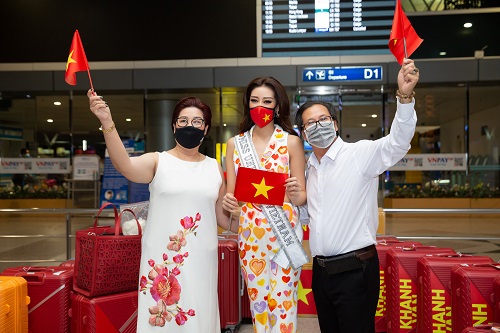 Cùng với ê kíp công ty Unimedia, gia đình cũng đến tiễn Khánh Vân đi Mỹ. Ba mẹ Khánh Vân luôn ủng hộ con gái, lần này Khánh Vân sang Mỹ, điều khiến ba mẹ Khánh Vân lo nhất là vấn đề sức khoẻ. Tuy nhiên, Khánh Vân sẽ thực hiện các biện pháp bảo vệ sức khoẻ theo yêu cầu của tổ chức Miss Universe trong những ngày thi tại Mỹ. Á hậu Mâu Thuỷ, Á hậu Kim Duyên, người đẹp Lê Hoàng Phương, người đẹp Vũ Thị Hoà Liên cũng có mặt để tiễn Hoa hậu Khánh Vân sang Mỹ.