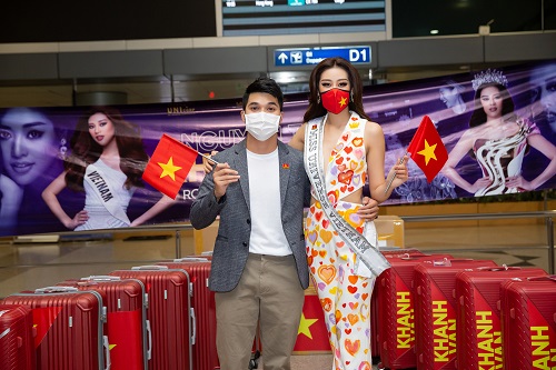 Tại sân bay, Khánh Vân tuân thủ theo các quy định về phòng chống dịch Covid-19, đeo khẩu trang và hạn chế tụ tập đông người. Cô tiết lộ mang theo 15 vali hành lý, nhưng xin phép được giữ bí mật về số lượng trang phục mang theo. “Vân sẽ đem đủ đồ cho 10 ngày thi, còn cụ thể như thế nào, khán giả sẽ được biết khi Vân diện lên người. Vân mang theo tất cả là trang phục của NTK Việt Nam, kể cả từng món phụ kiện, Vân quý tình cảm của mọi người, dù các NTK đều biết Vân sẽ không thể mặc hết đồ nhưng vẫn tận tình chuẩn bị từng bộ, gửi gắm tình cảm trong đó. Vân sẽ không dự thi với tinh thần chặt chém về thời trang, mà quan trọng là giới thiệu về thời trang Việt và niềm tự hào Việt Nam” – cô chia sẻ. Vali Degree đồng hành cùng Khánh Vân trên hành trình đến Mỹ, gồm màu đỏ chủ đạo và màu cam.