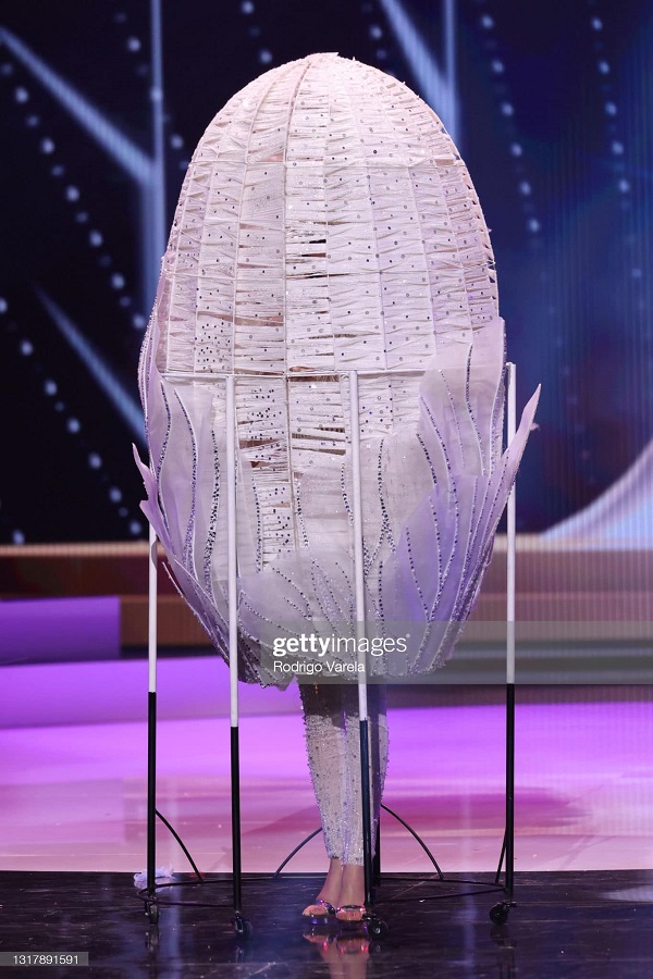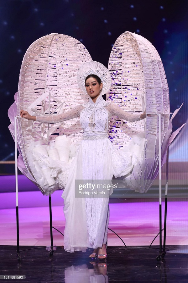 Với sự lựa chọn là tác phẩm Kén Em, Khánh Vân mang đến những tinh túy trong ngày dệt tơ tằm của người Việt. Màu trắng đã giúp cho phần thi của Khánh Vân ấn tượng và khác biệt hơn so với nhiều quốc gia khác. Dù trước đó khi mở vali trang phục dân tộc, Khánh Vân phải sửa chữa khá nhiều vì quá trình vận chuyển nhưng cô vẫn tự tin, lấy nguồn năng lượng để tỏa sáng trên sân khấu.