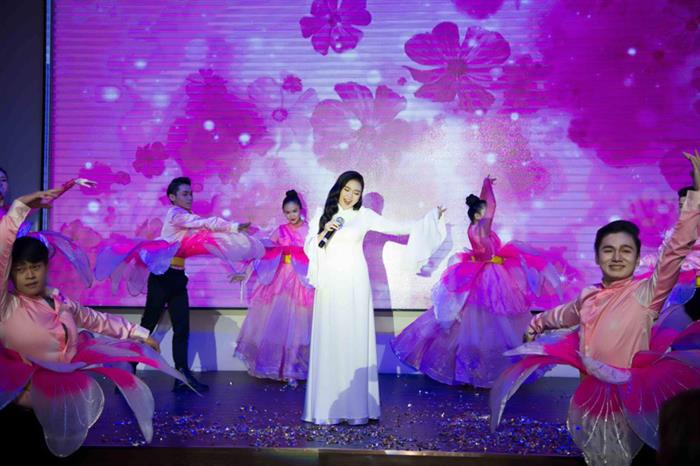 Ông Lê Ngọc Hưng cùng Ca sĩ Thu Trang Bolero trao tặng hoa cho Hoa hậu Vivian Trần - Gương mặt đại sứ hình ảnh của chương trình