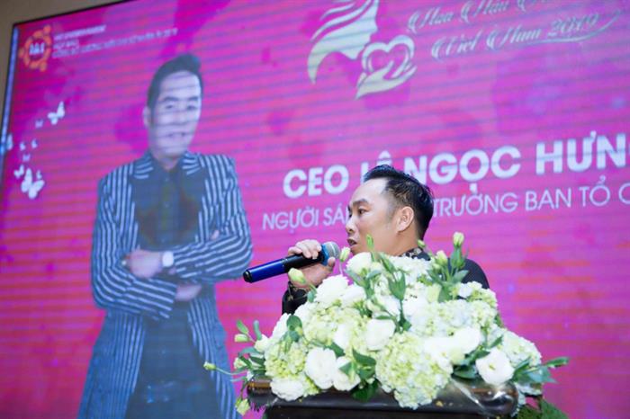 Ông Lê Ngọc Hưng - TGĐ Công ty HKT (Người sáng lập giải thưởng Tôn vinh Hoa hậu Nhân ái Việt Nam 2019) phát biểu tại buổi họp báo