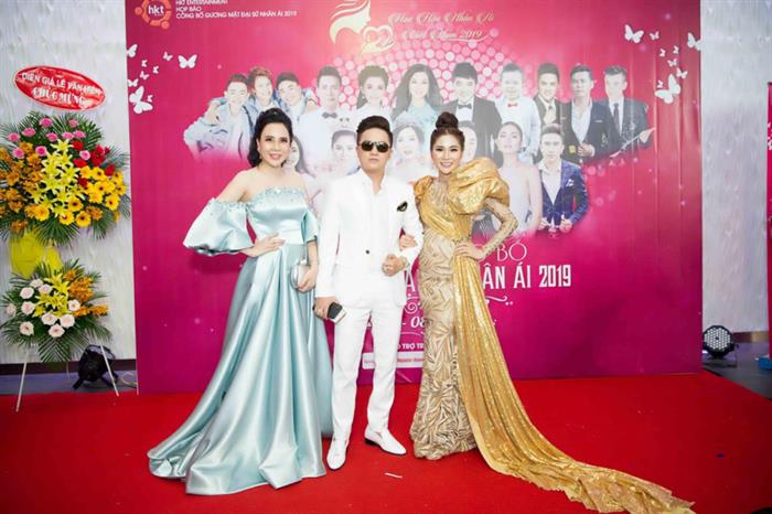 Từ trái sang: Ca sĩ Thu Trang Bolero, Hoa hậu Nhân ái Quốc tế Vicky Nguyễn, Ca sĩ Lady Phương Thùy, Hoa hậu Châu Ngọc Bích, Hoa hậu Vivian Trần, Hoa hậu Lê Đỗ Minh Thảo cùng ông Lê Ngọc Hưng trả lời hỏi đáp báo chí và truyền thông.
