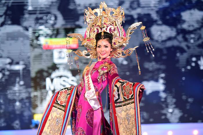 Người đẹp gốc Long An trong phần thi quốc phục.