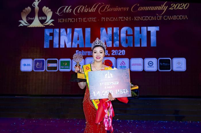 Vượt qua 24 thí sinh tài năng và xinh đẹp người Việt trên thế giới, thí sinh mang SBD 09 Kimmy Bùi đã xuất sắc đăng quang ngôi vị cao nhất cuộc thi Hoa hậu Cộng đồng Doanh nhân Thế giới – Ms World Community Business 2020. Bên cạnh đó, cô gái này còn dành thêm giải thưởng phụ: Hoa hậu mặc trang phục dạ hội đẹp nhất.
