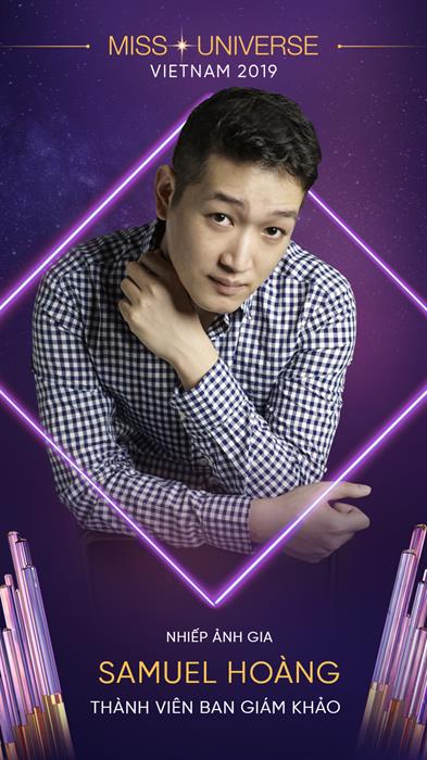 Nhiếp ảnh gia Samuel Hoàng là tên tuổi nổi tiếng trong giới nhiếp ảnh Việt Nam. Có kinh nghiệm làm việc ở nước ngoài, hợp tác cùng nhiều tạp chí, nhãn hàng nổi tiếng trong và ngoài nước, giám khảo Samuel Hoàng sẽ đưa ra những nhận xét khách quan, mang tính xây dựng về mặt hình ảnh giúp thí sinh tỏa sáng, tự tin thể hiện bản thân.