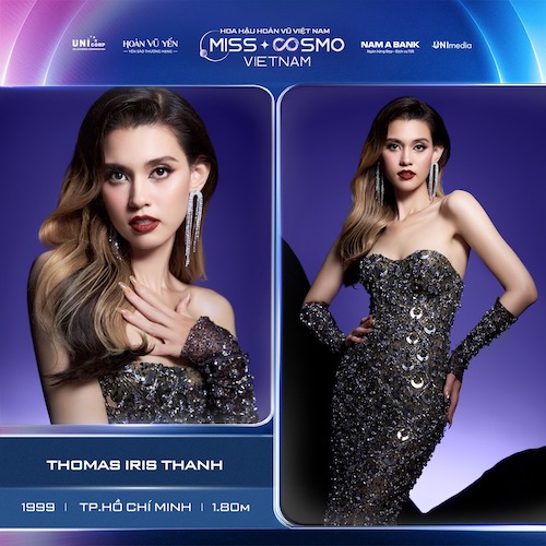Thomas Iris Thanh – cô gái lai sở hữu chiều cao 1m8. Cô là con lai Đức – Việt có cha là người Đức, mẹ là người Việt Nam, Sinh năm 1999 tại Đức, sử dụng thành thạo 3 ngoại ngữ Việt – Đức – Anh. Trở về quê hương Việt Nam, hiện cô đang làm việc với vai trò hoạ sĩ vẽ tranh minh họa cho thiếu nhi tại TP.HCM. Trước khi đến với cuộc thi online Hoa hậu Hoàn vũ Việt Nam – Miss Cosmo Vietnam 2023, Thomas Iris Thanh từng đạt vị trí Top 2 Miss Charm Vietnam 2023.