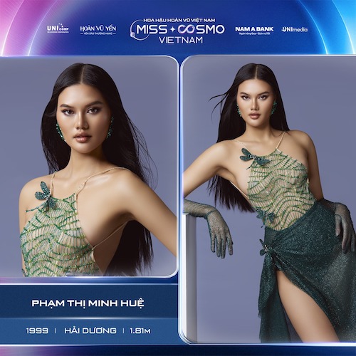 Nằm trong top thí sinh có chiều cao khủng nhất là thí sinh Phạm Thị Minh Huệ, cao 1m81. Minh Huệ từng ghi danh vào Top 71 Hoa hậu Hoàn vũ Việt Nam 2022, cô đã quyết định quay trở lại cuộc đua đến với vương miện Hoa hậu Hoàn vũ Việt Nam – Miss Cosmo Vietnam 2023 sau hành tình tôi luyện và hoàn thiện bản thân. Minh Huệ từng là vận động viên bóng chuyền tại Giải Vô địch bóng chuyền trẻ quốc gia năm 2017, Cô cho biết: “Tôi đã quyết định quay trở lại Hoa hậu Hoàn vũ Việt Nam – Miss Cosmo Viet Nam 2023, với giấc mơ mang trên mình sứ mệnh mang những dự án thiện nguyện lan tỏa đến cộng đồng.”