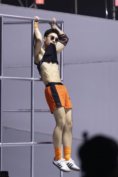 Top 13 thí sinh của chương trình cũng đã bước vào thử thách đầu tiên với tiết mục thi trình diễn trang phục thể thao. Không chỉ gây ấn tượng với hình thể “bỏng mắt”, các thí sinh còn gây ấn tượng bởi những sải bước tự tin và thần thái ấn tượng khi kết hợp cùng những thiết kế cầu kỳ và không kém phần tỉ mỉ. Trong khi đó, dưới sự thể hiện của hàng loạt “quý ông” tài năng, “xà nữ” Rapper Pháp Kiều đã “đốt cháy” sân khấu bởi ca khúc “D.O.C”.