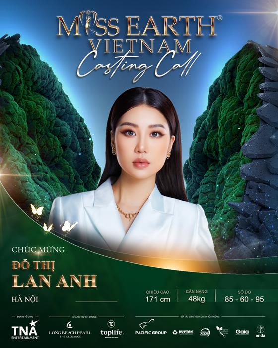 Tốt nghiệp đại học California State University Fullerton, thí sinh Đỗ Thị Lan Anh (sinh năm 1997, chiều cao 171cm, số đo: 85-60-95) rời quê nhà từ năm 1 tuổi để sang Châu Âu và sau đó định cư ở Mỹ cùng gia đình. Lan Anh có rất nhiều bạn bè là người Việt Nam và rất yêu thích các món ăn Việt. Đã nhiều lần trở về Việt Nam để du lịch, song lần này Lan Anh cho biết cô quyết tâm dự thi Miss Earth Việt Nam 2023, cũng như định hướng về Việt Nam để sống và làm việc, vì muốn được cống hiến sức mình cho những mục tiêu phát triển và bảo vệ môi trường Việt Nam trong hiện tại và tương lai.