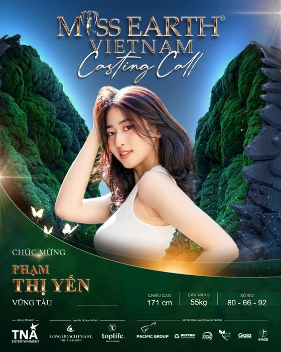 Thí sinh Phạm Thị Yến (sinh năm 2000, chiều cao 172cm, số đo: 80-66-92) hiện đang sinh sống và làm việc tại Thành Phố Hồ Chí Minh. Công việc chính là mẫu ảnh và người mẫu tự do đã giúp Phạm Thị Yến tự tin hơn trong cuộc sống nhưng Yến tự thấy mình còn nhiều thiếu sót. Đến với Miss Earth Vietnam 2023, Phạm Thị Yến mong muốn được trải nghiệm và phát triển hơn về bản thân.