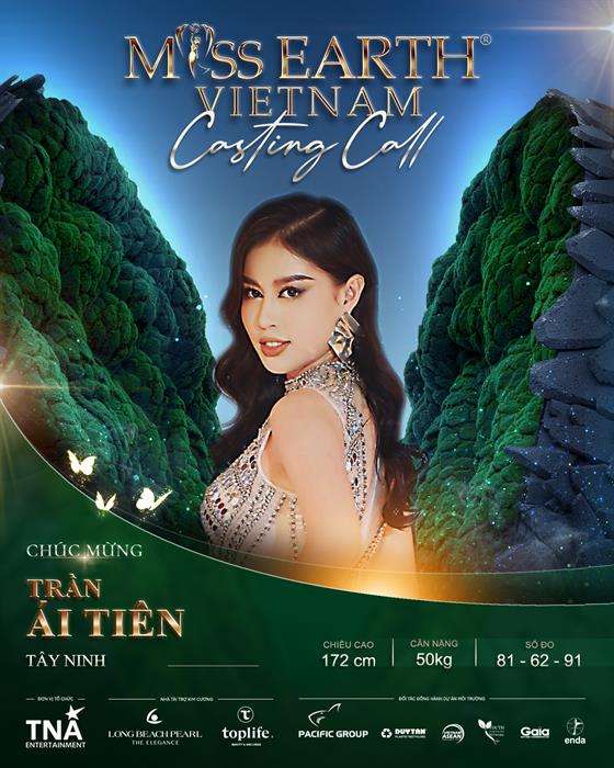 Thí sinh Trần Ái Tiên (sinh năm 1998, chiều cao 172cm, số đo: 81-62-91), đã tốt nghiệp Đại học Tôn Đức Thắng chuyên ngành Marketing và hiện đang là người mẫu tự do. Ái Tiên đến với cuộc thi với mong muốn thoát khỏi vòng an toàn của bản thân để trở thành một phiên bản hoàn hảo hơn và mang lại nhiều giá trị cho cộng đồng và xã hội.