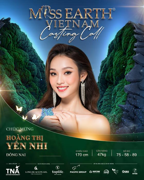Người đẹp Hoàng Thị Yến Nhi (Sinh năm 2000, chiều cao 170cm, số đo: 75-58-89) đã từng lọt vào top 10 Miss World Việt Nam 2023. Yến Nhi cũng là thí sinh đang nhận được sự ủng hộ rất lớn từ fan sắc đẹp khi quyết định đến với cuộc thi Miss Earth Việt Nam 2023.