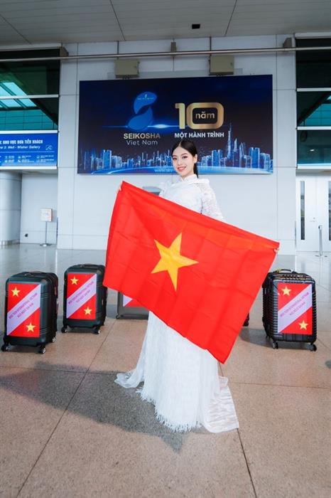 Đóng gói hơn 10 kiện hành lý, tổng trọng lượng lên đến hơn 200kg, hành trang của Ngô Ngọc Gia Hân mang theo bao gồm trang phục dự thi, quà tặng cho các thí sinh…Đặc biệt không thể thiếu lá cờ Việt Nam sẽ theo chân em đến đấu trường nhan sắc quốc tế.