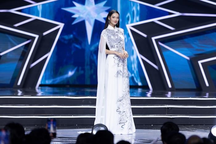 Thí sinh thứ 5 khi trình diễn áo dài chính là Lê Thị Kim Huyền, người đẹp có những sải bước tự tin và phần trình diễn hút mắt. Bùng nổ khi xuất hiện, Phí Phương Anh thướt tha khi sải những bước chân trên sân khấu ấn tượng của Miss Universe Vietnam 2024. Cô hoàn toàn làm chủ được sàn diễn và toát nên thần thái nữ hoàn. Kế tiếp, thí sinh Nguyễn Thu Thảo đến từ Bình Thuận xuất hiện với tà áo dài sắc hồng, ngọt ngào. Quách Tapiau Mai Ly có phần trình diễn duyên dáng, thể hiện được vẻ đẹp của người con gái Việt Nam. Trong tà áo dài truyền thống, thí sinh Đinh Thị Triều Tiên gây bất ngờ về thần thái tự tin, người đẹp có phần trình diễn tròn trịa. Đoàn Tường Linh ghi điểm với vẻ đẹp sang trọng, hiện đại, toát lên khí chất của người phụ nữ Việt Nam trong thời đại mới khi diện áo dài. Nối tiếp Tường Linh, Vũ Thuý Quỳnh khiến toàn bộ khán giả có mặt tại hiện trường hò reo vì vẻ đẹp sắc sảo. Sau đó, Phạm Thị Đan Chi lại mang đến những cảm xúc với vì sự