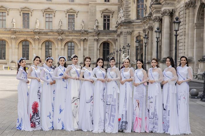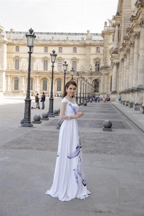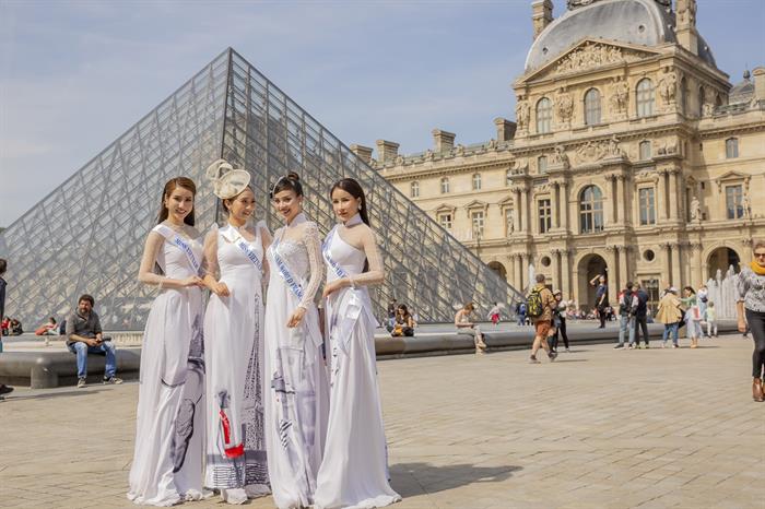 Nguyễn Thị Ngọc Vân trong Trang phục áo dài. Bộ ảnh ‘Qúy cô Paris’ được thực hiện tại Bảo tàng Louve giữa lòng thành phố Paris - Pháp.
