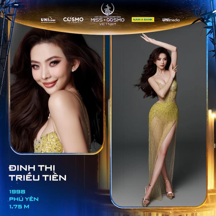 Thí sinh Đinh Thị Triều Tiên đến từ Phú Yên là cái tên mới nhất vừa gia nhập đường đua Hoa Hậu Hoàn Vũ Việt Nam – Miss Cosmo Vietnam 2025. Cô được đánh giá một gương mặt sáng giá với những thành tích ấn tượng: Á Khôi 2 Hoa Khôi Sinh Viên Việt Nam 2017, Top 40 Hoa Hậu Việt Nam 2018, Top 10 Miss Universe Vietnam 2024.