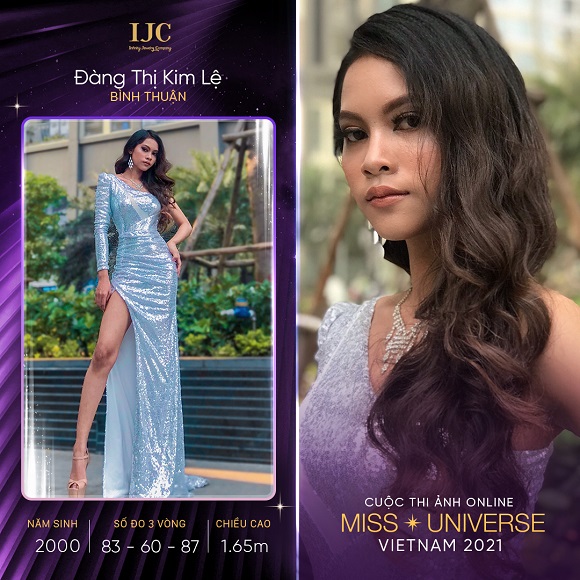 Đàng Thị Kim Lệ là cô gái dân tộc Chăm, mang vẻ đẹp mộc mạc như chính tính cách con người cô. Từ nhỏ, cô thường được mọi người xung quanh gọi là “hoa hậu”, “người mẫu” vì ngoại hình ấn tượng. Bản thân Đàng Thị Kim Lệ cũng có ước mơ hoạt động nghệ thuật, dù chiều cao 1m65 là một rào cản không nhỏ trên con đường chinh phục đam mê. Cô quan niệm “Không sợ khó khăn hay chông gai, còn thở được là còn có ước mơ, không ai ngăn cản chúng ta ước mơ ngoại trừ chính bản thân”. Cô đến với cuộc thi ảnh online Hoa hậu Hoàn vũ Việt Nam 2021 bằng sự nghiêm túc và khát khao có thể là người kế nhiệm của đương kiêm hoa hậu Khánh Vân. Cô có số đo hình thể lần lượt là 83-60-87.