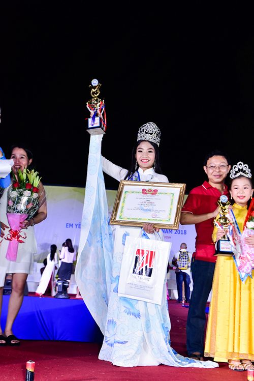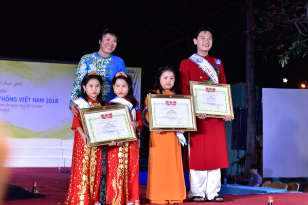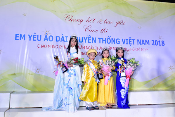 Đỗ Hoàng Anh Thư (bảng B),nhóm Tuổi thần tiên (bảng C) và Nguyễn Hoàng Mai Anh (bảng A) xuất sắc giành giải nhất cuộc thi “Em yêu áo dài truyền thống Việt Nam” năm 2018.